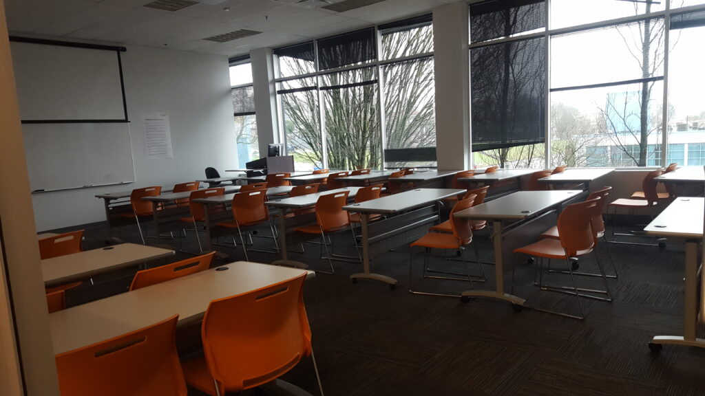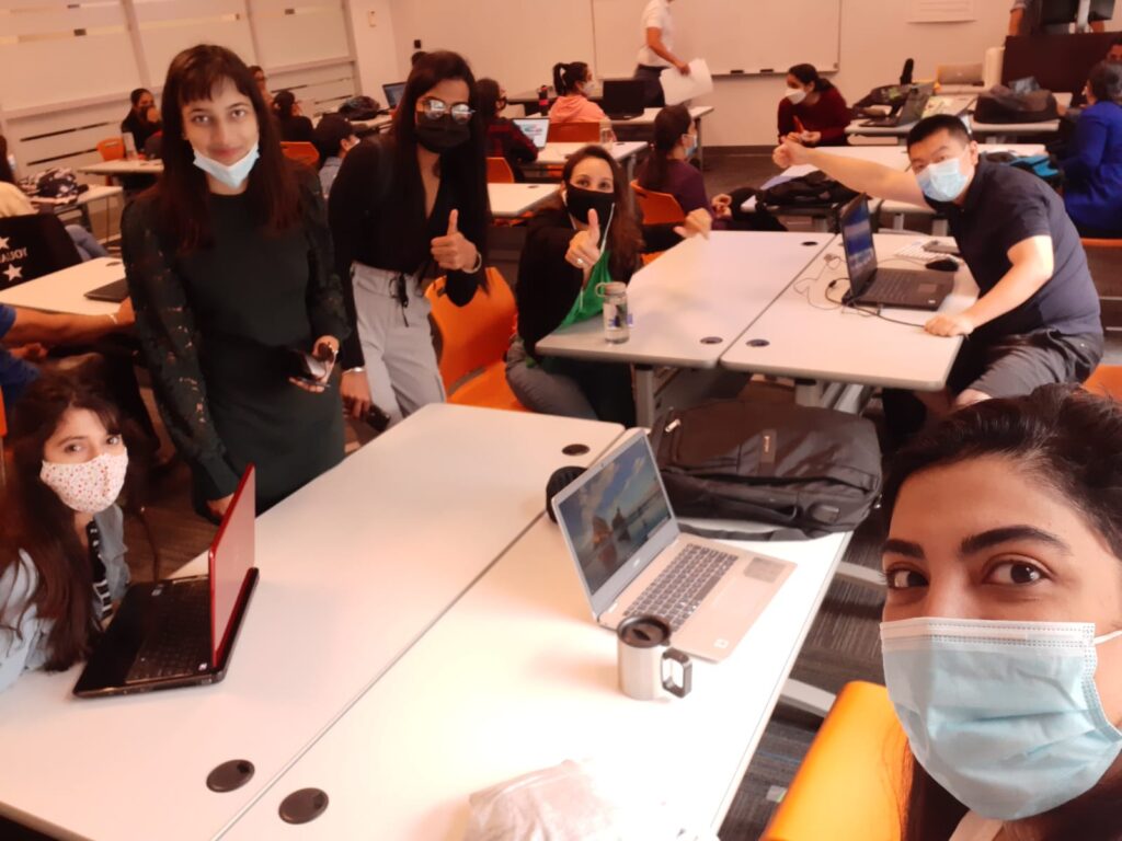 After 4 months of attending just online classes, we could finally return to in-person classes for the last term of the year 2020 in September. For this time, everything looks different on campus. Masks mandatory, social areas closed, hands sanitizing, temperature measuring, social distancing seats and some students attending the online class. Instead of all those COVID protocols, it was an exciting experience to see each other and interact in person.