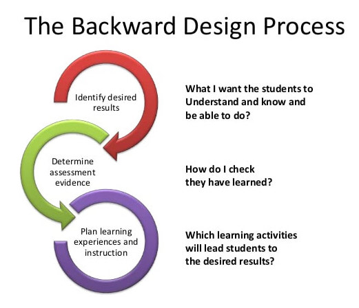 The backward design means design thinking by the end. This methodology follows three stages, which are: Stage 1: Identify desired results; Stage 2: Determine acceptable evidence; Stage 3: Plan learning experiences and instruction (Wiggins). The three stages planning approach in UbD called backward design because it starts thinking by the end. It means thinking about the understanding and the goals to achieve in the learning process. When designing the curriculum, first, it must start determining the results desired to learners achieve. Second, at the assessments, in which pieces of evidence teachers can use to demonstrate the desired understanding. Finally, it is time to select activities, materials, resources that can be useful to achieve the understandings.